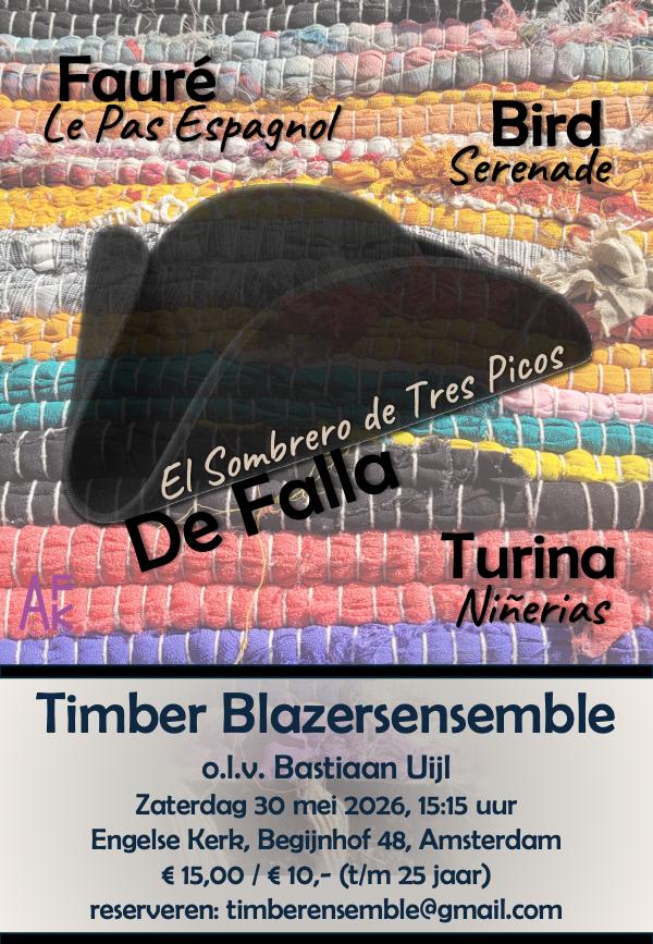 Op zondag 15 februari 2026 speelt Timber in de Engelse Kerk op het Begijnhof in Amsterdam. Met op het programma Legends van Dvořák, Ouverture Cosi fan tutte van Mozart en Parthia in Es van Stamitz. Plus gastoptreden van hobotrio Trubbel.